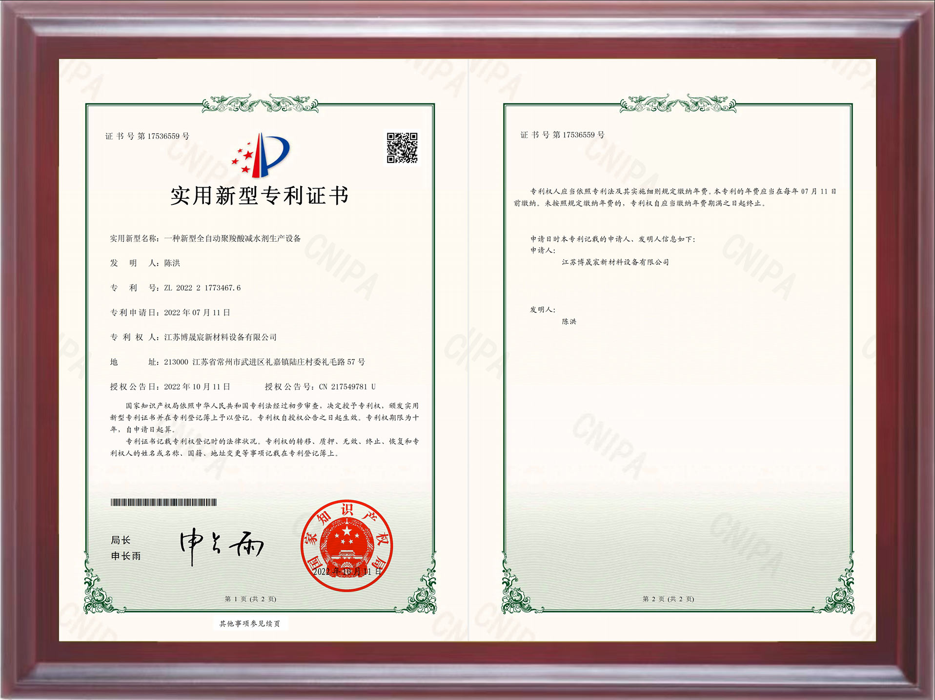 江蘇博晟宸新材料設備有限公司(以下簡稱博晟宸)專注于混凝土外加劑生產設備的研發與制造!我們秉承“誠信經營,用心服務”的企業宗旨,竭誠為您提供優質的產品和滿意的服務!我們注重細節,不斷創新,實現合成復配設備智能化,一機多用。竭盡全力為客戶節省成本,免費提供建廠方案的指導,免費提供生產配方,免費提供技術支持!